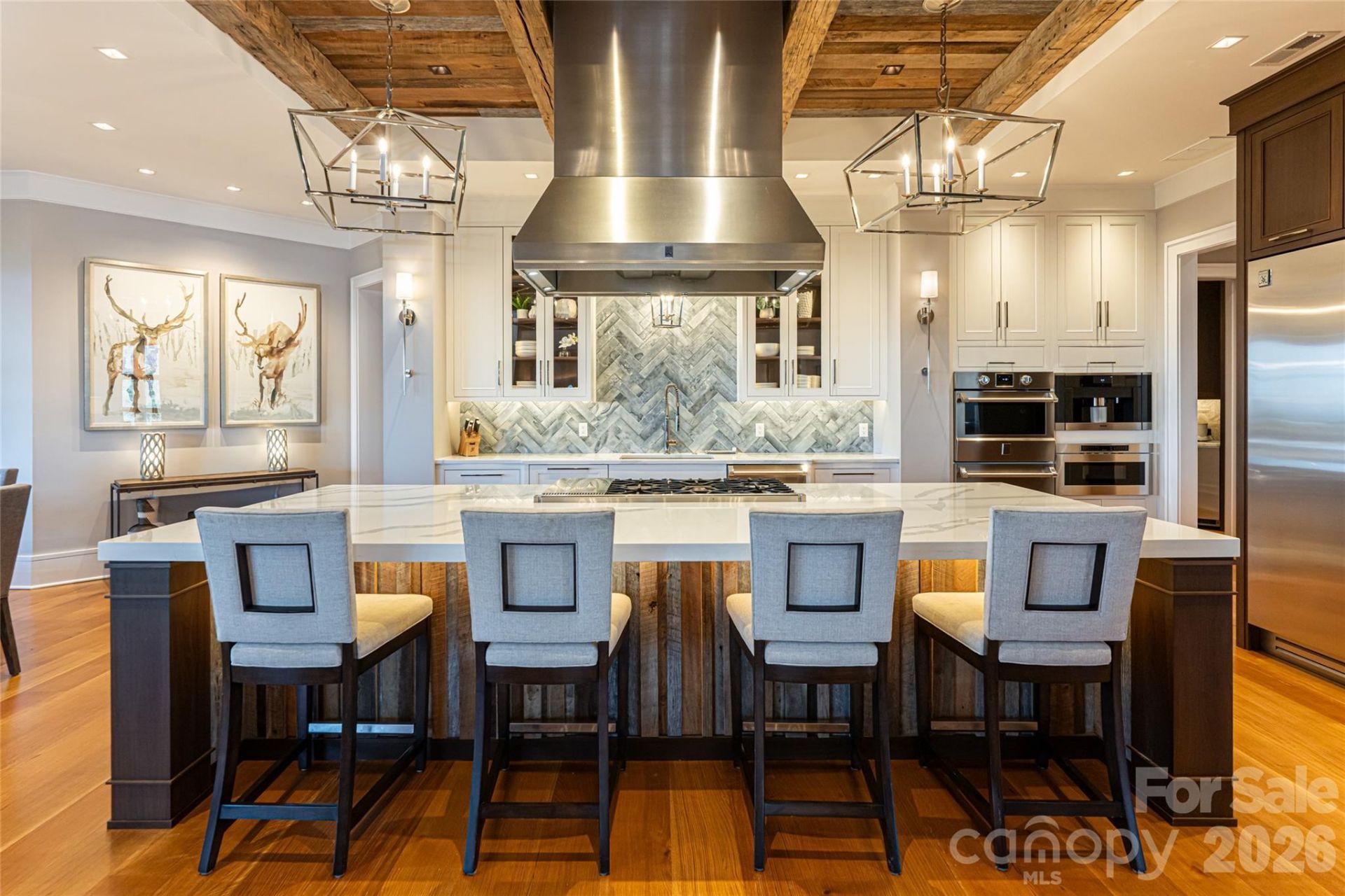 Appliances: Bar Fridge, Dishwasher, Disposal, Exhaust Hood, Gas Cooktop, Microwave, Refrigerator, Wall Oven, Warming Drawer, Washer/Dryer, Wine Refrigerator